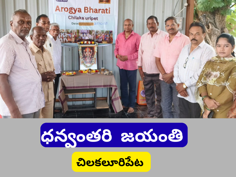 చిలకలూరిపేటలోని విజ్ఞాన్ విహార ఇంగ్లీష్ మీడియం పాఠశాల ప్రాంగణంలో ఆరోగ్య భారతి చిలకలూరిపేట శాఖ ఆధ్వర్యంలో ధన్వంతరి జయంతి వేడుకలు ఈరోజు శుభ్రంగా, భక్తి శ్రద్ధలతో ఆనందంగా