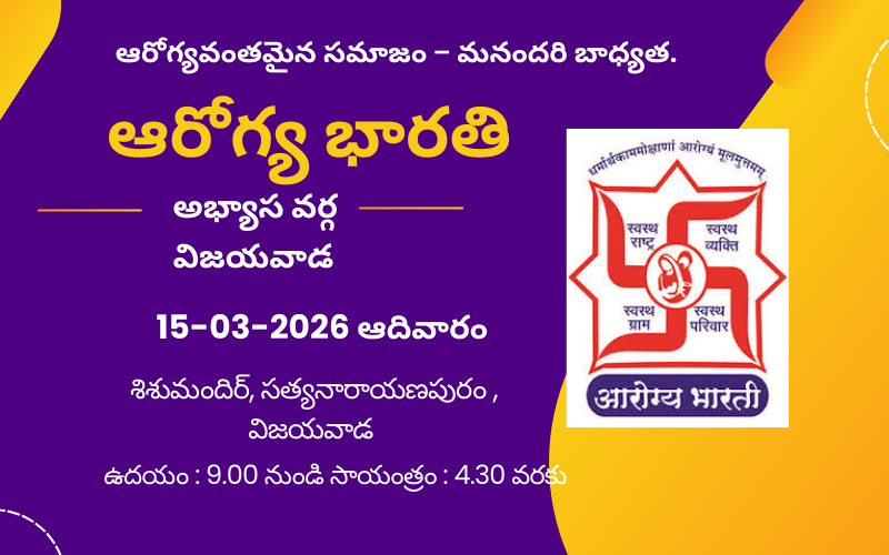 ఆరోగ్యవంతమైన సమాజం – మనందరి బాధ్యత. ప్రియమైన మిత్రులారా, ఆరోగ్యవంతమైన సమాజ నిర్మాణం కోసం పనిచేస్తున్న ఆరోగ్య భారతి ఆధ్వర్యంలో అభ్యాస వర్గ మార్చి 15, 2026