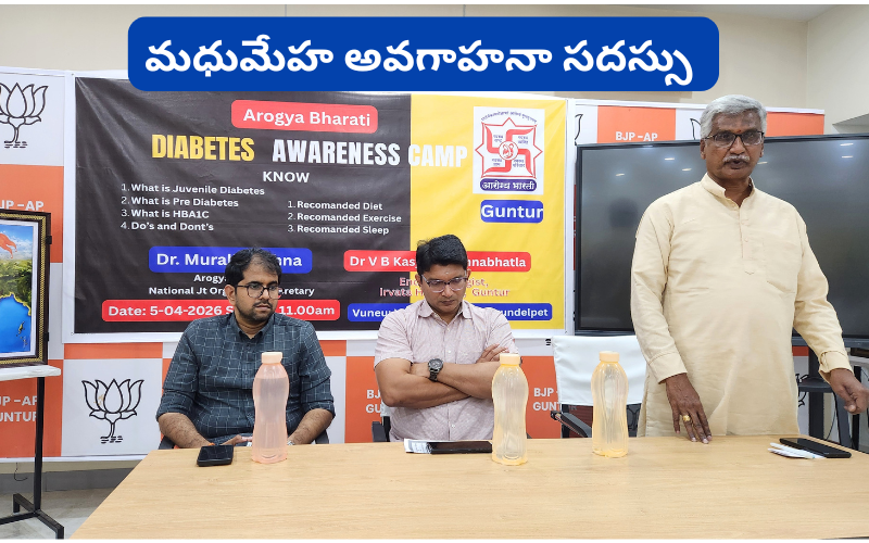 సమగ్ర ఆరోగ్యంపై నిపుణుల సందేశం 5 ఏప్రిల్ 2026, గుంటూరు. స్థానిక అరండల్పేటలోని యోగీ భవన్లో ఈరోజు నిర్వహించిన మధుమేహ అవగాహన సదస్సు విశేష స్పందన పొందింది.