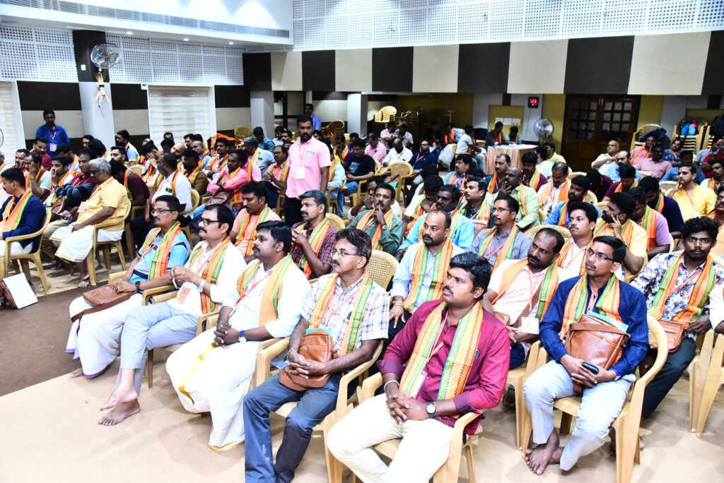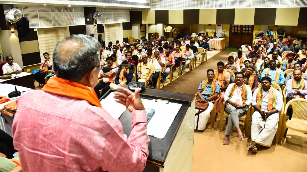 The conference, which began at 4:00 PM, was inaugurated by BMS National Organizing Secretary Sri B. Surendra Ji. In his opening remarks, Kerala State President Sri S. Vinaya Kumar Ji welcomed attendees, setting the tone for a series of impactful discussions. National President Sri P.N. Pradeep Ji delivered the presidential address, emphasizing BMSRM’s non-political stance and its role as a guiding force for representatives, contrasting it with politically driven unions that “float like a boat without a rudder in the deep sea.”