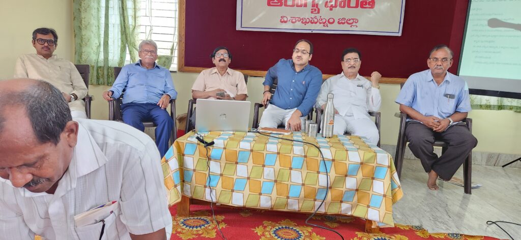 విశాఖపట్నం, మే 18, 2025: ఆరోగ్య భారతి ఆధ్వర్యంలో విశాఖపట్నంలో ఒక రోజు వర్క్షాప్ ఆదివారం అత్యంత విజయవంతంగా, ఘనంగా జరిగింది. ఈ కార్యక్రమంలో 54 మంది డెలిగేట్స్ ఉత్సాహంగా పాల్గొన్నారు. ఆరోగ్య సంరక్షణ, సాంప్రదాయ వైద్యం, ఆరోగ్యకరమైన జీవనశైలి అంశాలపై సమగ్ర అవగాహన కల్పించడం ఈ వర్క్షాప్ యొక్క ప్రధాన లక్ష్యం. సమాజంలో ఆరోగ్య స్పృహను పెంపొందించేందుకు ఆరోగ్య భారతి చేపట్టిన ఈ కార్యక్రమం పాల్గొన్నవారిలో కొత్త ఉత్తేజాన్ని నింపింది.